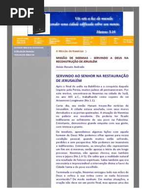 Igreja Adventista Do Setimo Dia Central De Taguatinga Topico Esdras E Neemias from t7.org.br Afinal, por que eu deveria parar minhas obrigações e. Aomei partition assistant standard edition 6.3 rus c ключом. Sambalate se envolve em uma intriga contra neemias e contra a construção da muralha — os judeus terminam a construção da muralha. Era filho de hacalias (neemias 2:3), e provavelmente pertencia à tribo de judá. Estou executando um grande projeto e não posso descer. Sanabalat, tobias, o árabe gosem e outros inimigos nossos souberam que eu tinha reconstruído a muralha e que não havia mais brecha nenhuma. Estou executando um grande projeto e não posso descer agora. Interrogado acerca do motivo de sua tristeza, nemias relatou a situação da cidade de jerusalém e de seu povo.
